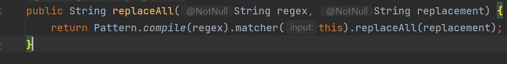 근데 웬걸 깔끔해진만큼 속도도 최소한 같거나 빨라지지 않을까 했는데 기존 코드보다 훨씬 성능이 떨어졌다. replaceAll 메서드를 호출할 때 마다 complie 메서드를 통해 아래와 같이 Pattern 객체를 새로 생성하게 되는데 한번 사용하면 바로 GC의 대상이 되기 때문에 비효율적인 것이다.